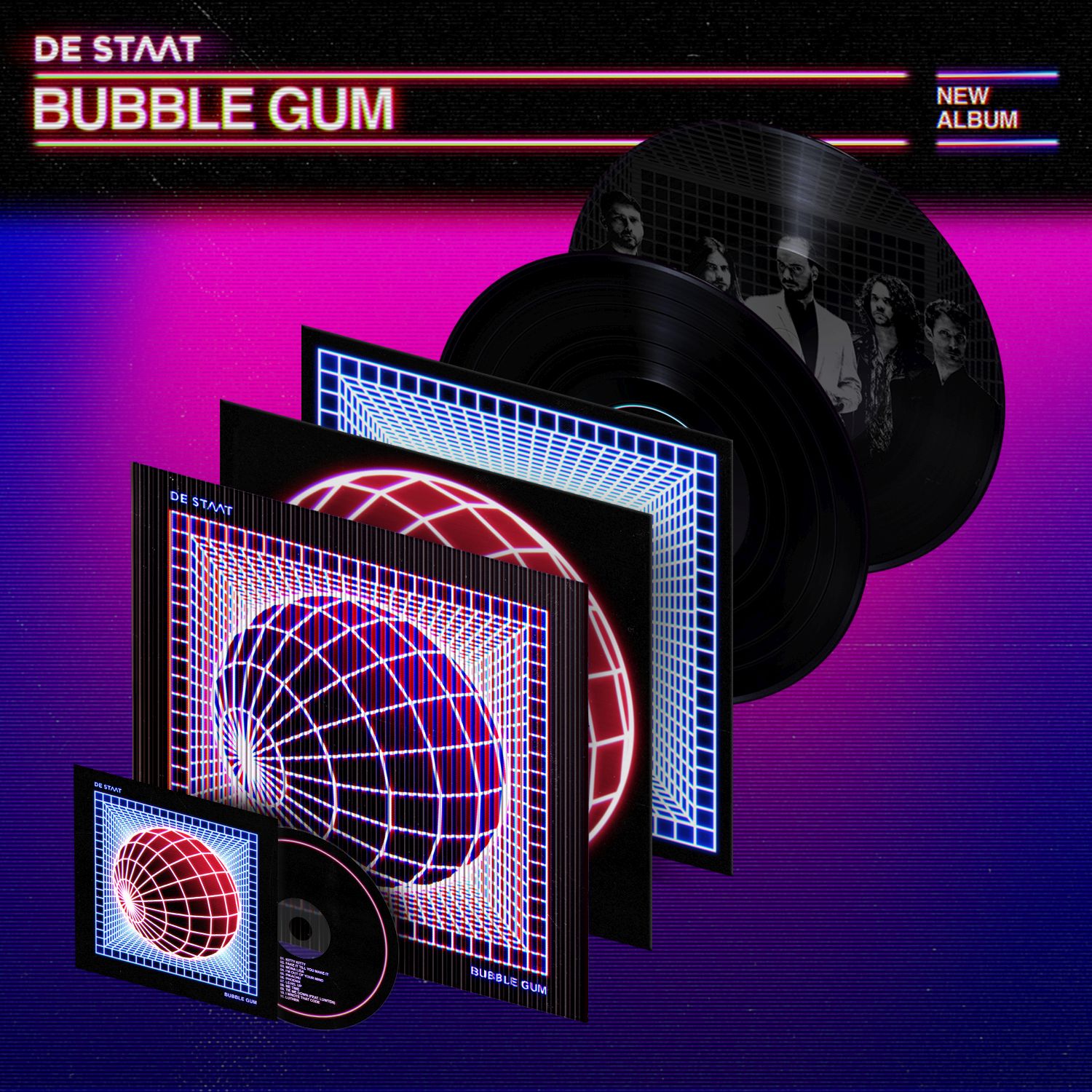 De mannen van De Staat zijn terug met een gloednieuw album genaamd ‘Bubble Gum’! De mensen die De Staat het afgelopen jaar live gezein hebben, hebben al een paar nieuwe nummers kunnen horen. Zij weten dat Bubble-Gum zeker niet als Bubblle-Gum gaat klinken. Integendeel! De nieuwe tracks klinken stevig, soms hard, maar absoluut wel heel erg De Staat. We zijn super benieuwd naar de overige nummers.