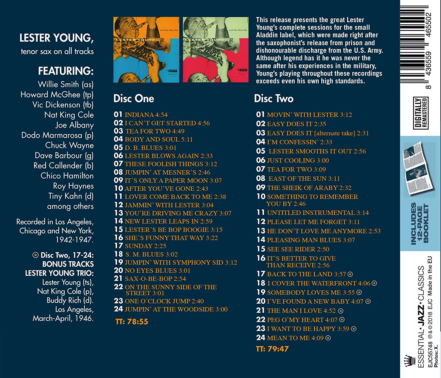 IndianaI Can't Get StartedTea For TwoBody And SoulD.b. BluesLester Blows AgainThese Foolish ThingsJumpin' At Mesner'sIt's Only A Paper MoonAfter You've GoneLover Come Back To MeJammin' With LesterYou're Driving Me CrazyNew Lester Leaps InLester's Be Bop BoogieShe's Funny That WaySundayS.m. BluesJumpin' With Symphony SidNo Eyes BluesSax-o-be-bopOn The Sunny Side Of The StreetOne O'clock JumpJumpin' At The Woodside