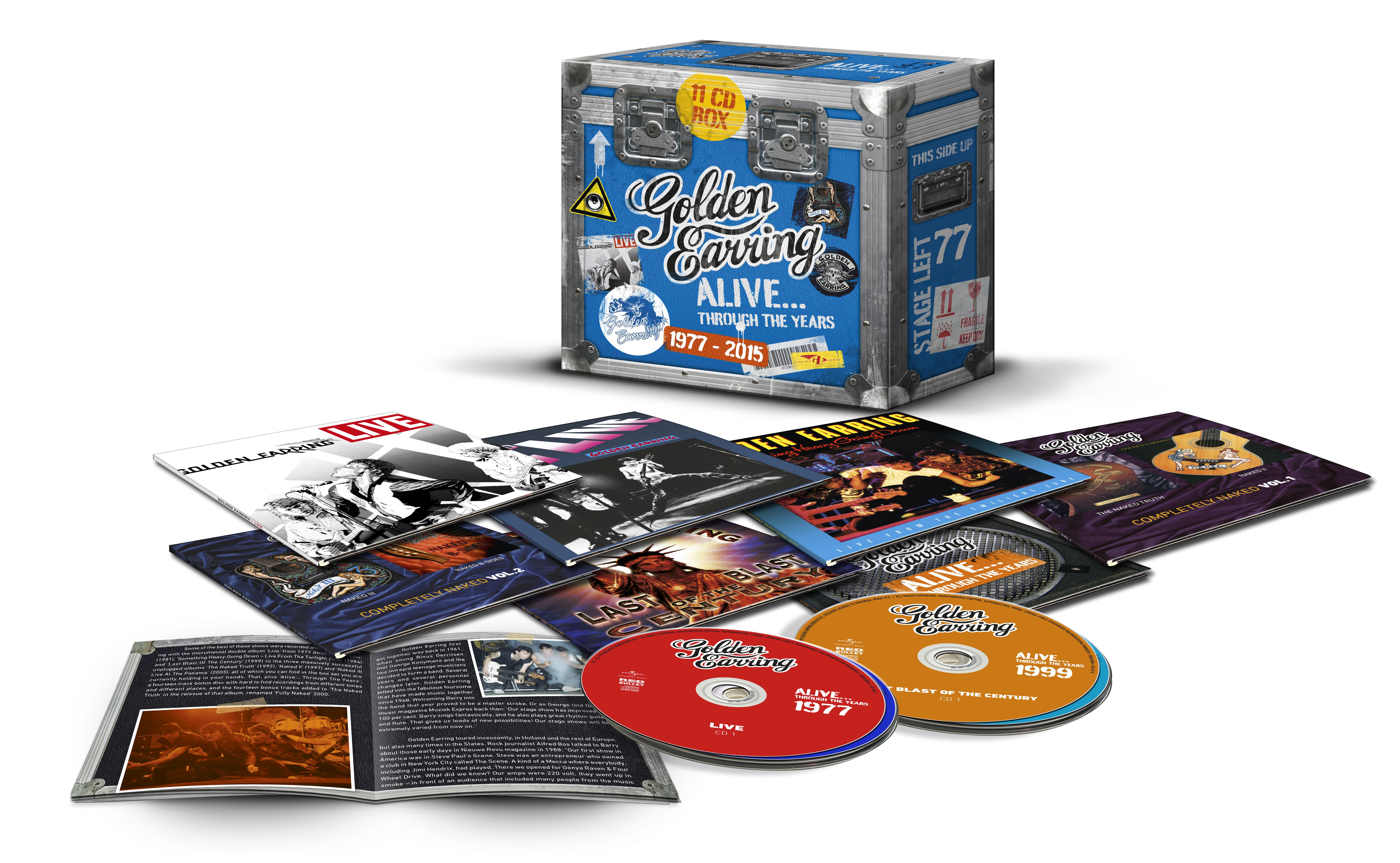 Deze LIMITED 'Alive, through the Years' boxset bevat zeven live albums, aangevuld met unieke opnames die eerder alleen als b-kantjes zijn verschenen. Ook vind je een aantal opnames van Golden Earring's Five Zero Show uit 2015 die wel eerder, maar dan alleen op DVD, zijn verschenen.