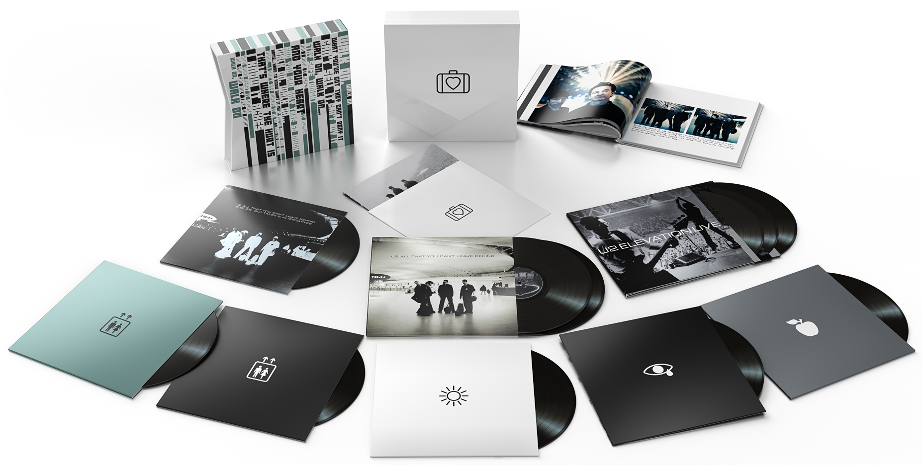 Dit is de 20th Anniversary 11 LP Super Deluxe Vinyl versie van de 20th anniversary van All that you can leave behind. Deze vinylbox bevat maar liefst elf LP's. De boxset bevat het geremasterde album. b-kanten, outtakes van de originele opnames en alternate version. Ook, verdeeld over drie LP's, het volledige Elevation Live From Boston concert en daarnaast nog vier LP's met daarop elf remixes waarvan er vier nog nooit eerder verschenen zijn. Daarnaast bevat de box ook nog een 32-pagina tellend boek met niet eerder verschenen foto’s van Anton Corbijn en een dubbelzijdige poster.