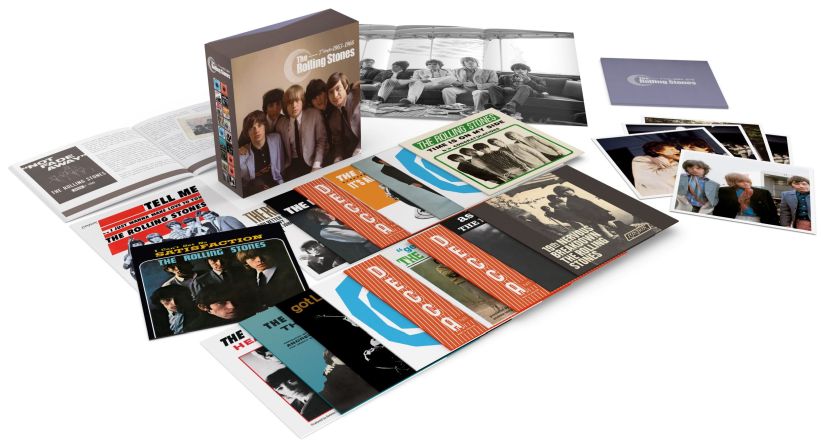 Gelimiteerde Singles Box Volume One: 1963-1966 van de Rolling Stones. De box bevat de eerste 18 singles en EPs die de band uitbracht op 7" singles. Naast de singles bevat de box ook nog 5 fotokaarten en een poster.
