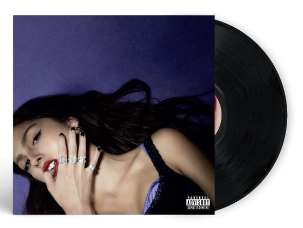 HET ZWARTE VINYL VAN OLIVIA RODRIGO'S 'GUTS'.